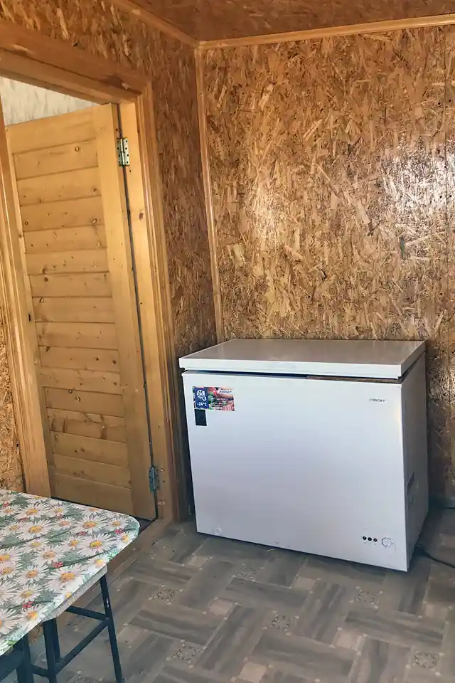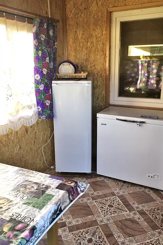 Все дома оборудованы кухнями, посудой, столовыми приборами, электроплитами, холодильниками и ларями для заморозки.