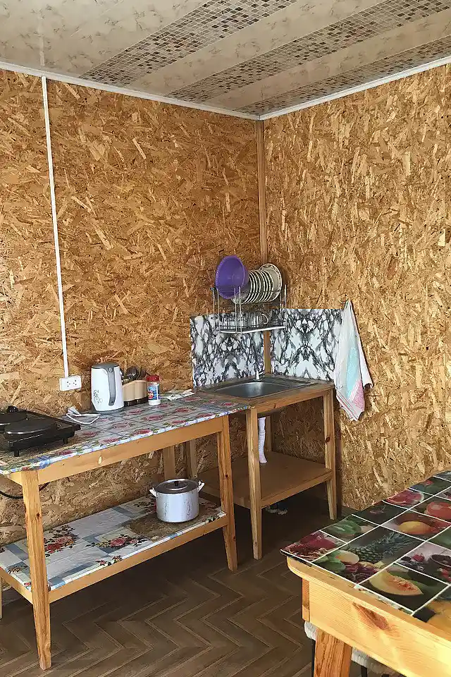 - Современные номера: Каждая комната оснащена новейшими сплит-системами, удобными кроватями и оборудованной кухней и посудой.